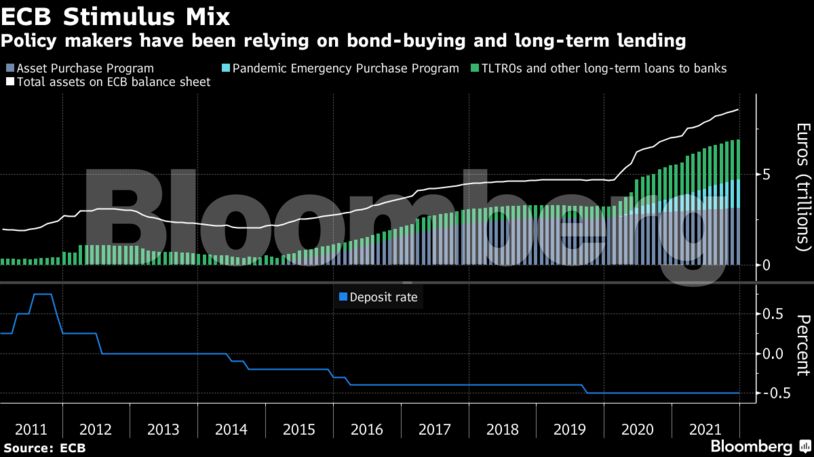 Αν και τα λεγόμενα TLTROs λήγουν το Μάρτιο του 2024, περίπου το ήμισυ εξ αυτών πρόκειται να αποπληρωθούν μέσα στο 2022, σύμφωνα με τον Giuseppe Maraffine, αναλυτή της Barclays Bank Plc, επιστρέφοντας τον ισολογισμό της ΕΚΤ στα επίπεδα του Ιουνίου του 2021.