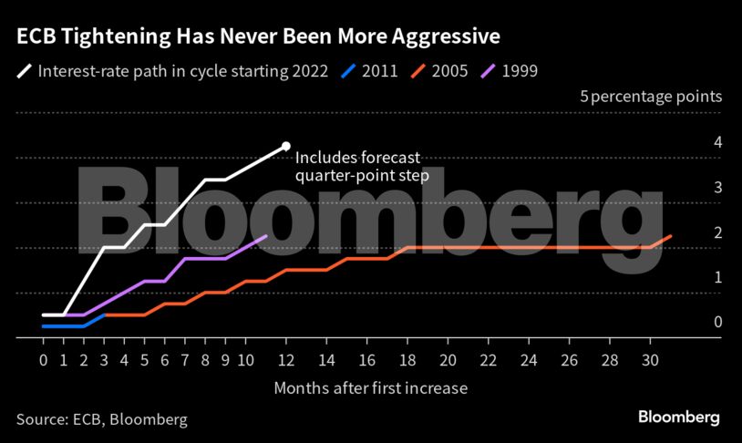 Ένα χρόνο μετά από την εκκίνηση του προγράμματος σύσφιξης της νομισματικής πολιτικής της ΕΚΤ, οι κεντρικοί τραπεζίτες φαίνεται πως προετοιμάζουν, πλέον, τα τελευταία στάδια του σκληρότερου προγράμματος αύξησης των επιτοκίων.