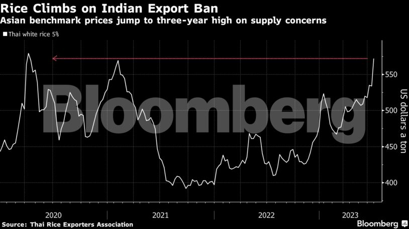 Η τιμή του ρυζιού, παράλληλα, αυξήθηκε σημαντικά μετά από την πρόσφατη απαγόρευση μέρους των εξαγωγών της Ινδίας.