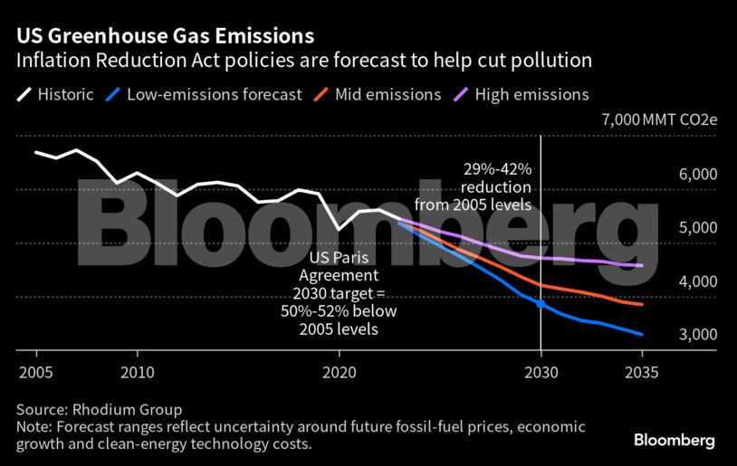 Ένα χρόνο μετά από το νομοσχέδιο-ορόσημο το οποίο έχει θέσει ως στόχο τη μείωση των εκπομπών βλαβερών αερίων στο 32%-51% υπό των επιπέδων του 2005 μέχρι το 2035, οι ΗΠΑ αναμένεται πως θα επιτύχουν μείωση της τάξης του 29%-42%, κάτι το οποίο αποτελεί σημαντική βελτίωση σε σχέση με τις προηγούμενες εκτιμήσεις αλλά δεν είναι αρκετό για την επίτευξη των στόχων της Συμφωνίας του Παρισιού. Αυτό ασκεί πιέσεις τόσο στις τοπικές κυβερνήσεις όσο και στον αμερικανικό ιδιωτικό τομέα για την επίτευξη των στόχων αυτών.