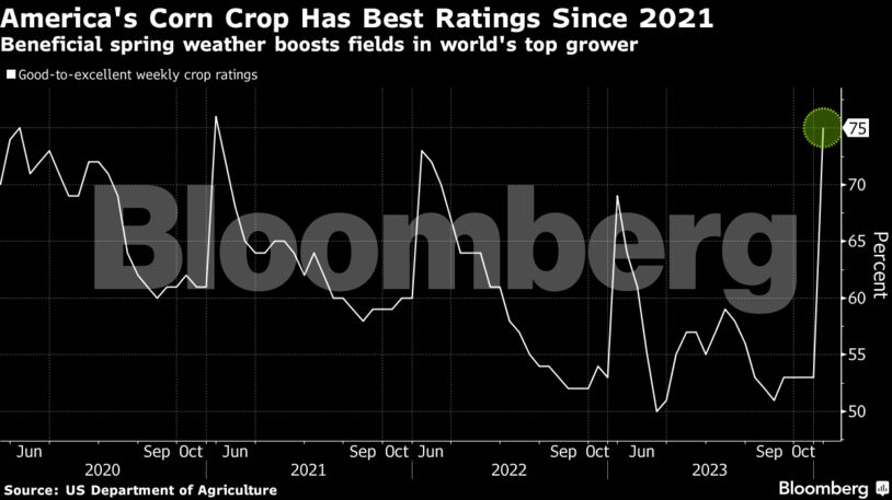 Η καλλιέργεια καλαμποκιού στις ΗΠΑ, η οποία είναι η μεγαλύτερη στον κόσμο, έχει ξεκινήσει με τον καλύτερο τρόπο, με το 75% των χωραφιών να βρίσκεται σε καλή ή άριστη κατάσταση. Οι άφθονες βροχοπτώσεις και οι λογικές θερμοκρασίες έδωσαν ώθηση στην παραγωγή, ακόμη και τη στιγμή που ορισμένοι αγρότες αντιμετώπιζαν πλημμυρισμένα χωράφια.