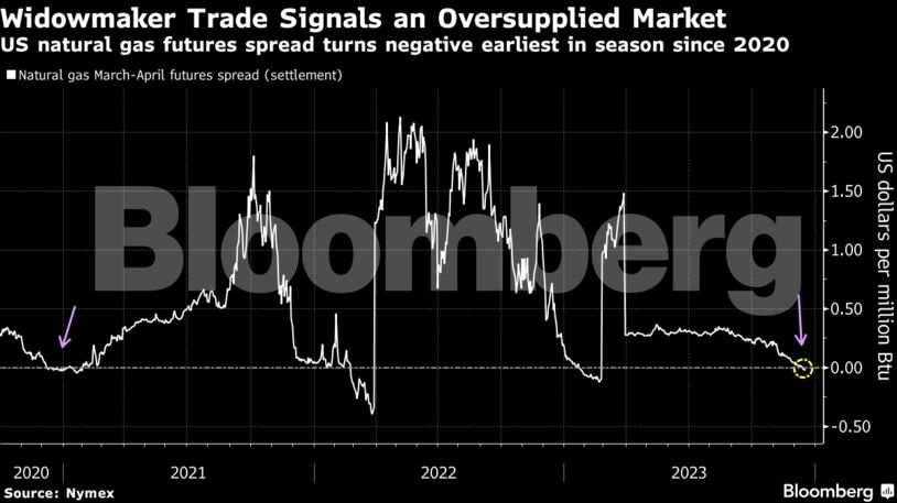 Ο ασυνήθιστα ζεστός καιρός τόσο στις ΗΠΑ όσο και σε πολλά άλλα σημεία του βόρειου ημισφαιρίου έχει μειώσει τη ζήτηση για φυσικό αέριο. Το spread μεταξύ των futures Μαρτίου και Απριλίου, έχει αποκτήσει πια αρνητικό πρόσημο.