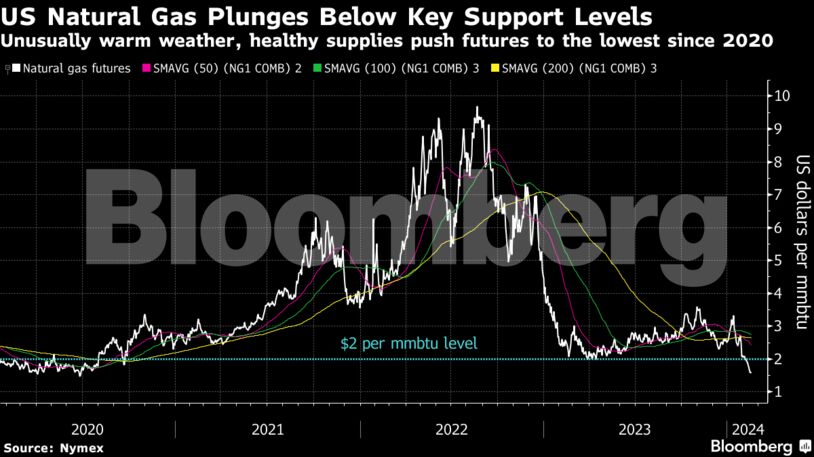 Τα αποθέματα κυμαίνονται πάνω από τον μέσο όρο πενταετίας για αυτή την εποχή, προσθέτοντας περαιτέρω πιέσεις στις τιμές, ενώ οι έμποροι αναμένουν ότι η τάση αυτή θα συνεχιστεί. Ένα παρόμοιο σενάριο διαδραματίζεται στην Ευρώπη. Μακροπρόθεσμα, η Goldman Sachs Group Inc. προβλέπει ότι ένα νέο κύμα προσφοράς υγροποιημένου φυσικού αερίου θα προκαλέσει ανισορροπία, περιορίζοντας τιμές από το 2025 και μετά.