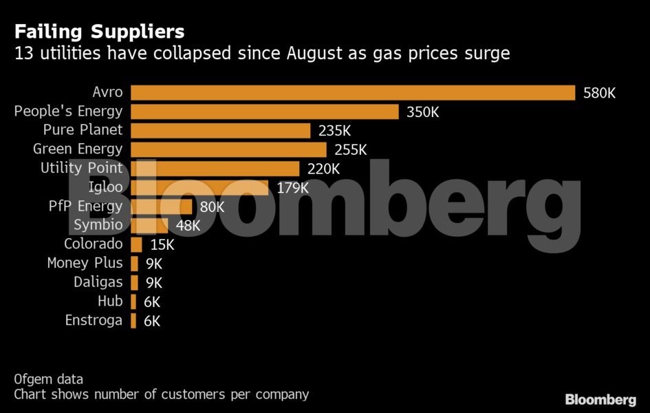 Τους τελευταίους δύο μήνες κατέρρευσαν 13 πάροχοι ενέργειας και όπως όλα δείχνουν η καταμέτρηση δεν έχει τελειώσει καθώς οι τιμές διατηρούνται σε υψηλά επίπεδα απειλώντας και άλλες εταιρείες. Ο τελευταίος πάροχος που ανέστειλε τις δραστηριότητές του, η εταιρεία Daligas Ltd., είχε καταχωρημένη έδρα σε ένα προάστιο του βόρειου Λονδίνου και 9.000 πελάτες.