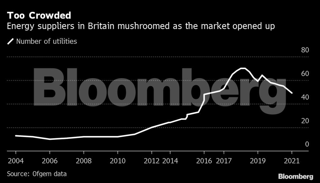 Αυτή η ευκολία εισόδου στην αγορά ενέργειας εξηγεί τον δυσανάλογα μεγάλο αριθμό παρόχων ενέργειας στη Βρετανία ο οποίος το 2018 -την εποχή της άνθησης του κλάδου- ξεπερνούσε τους 70. Εξηγεί επίσης γιατί η πιο ανοιχτή αγορά ενέργειας μεταξύ των μεγάλων οικονομιών της Ευρώπης δέχεται ισχυρό πλήγμα καταγράφοντας τη μία κατάρρευση μετά την άλλη.