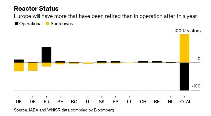 Σύμφωνα με τον Chris Gadomski, επικεφαλής πυρηνικής έρευνας του Bloomberg New Energy Finance, «παρά τις εκκλήσεις για αντιμετώπιση του προβλήματος της κλιματικής αλλαγής, η παγκόσμια πυρηνική αγορά παραμένει με την πλάτη στον τοίχο».