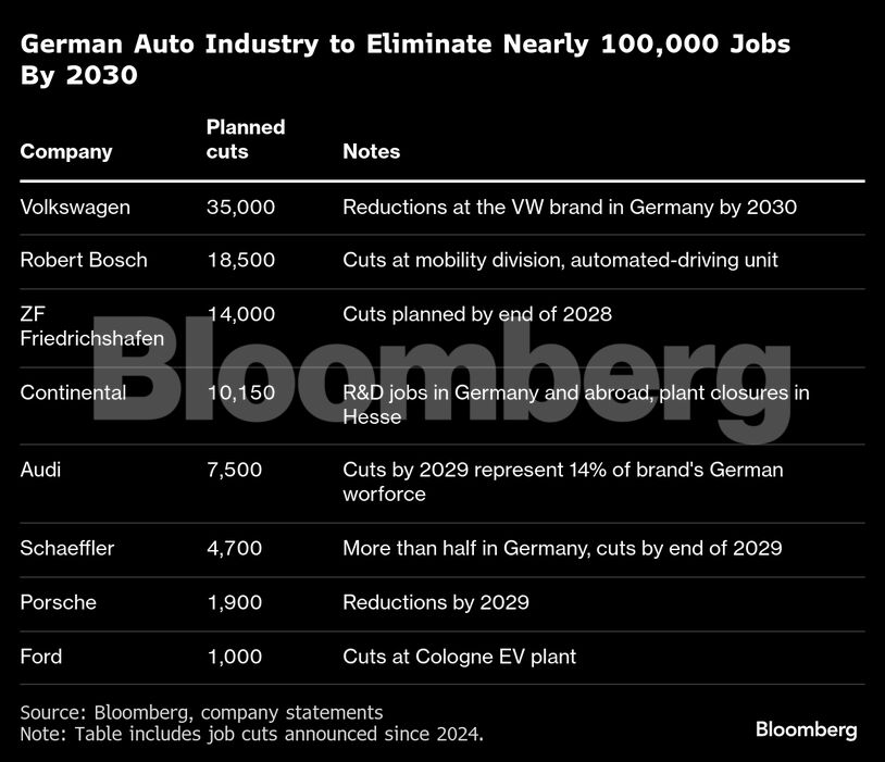 Το σχέδιο της Bosch να μειώσει το 3% του παγκόσμιου εργατικού δυναμικού της έως το 2030 είναι ενδεικτικό της κρίσης που διανύει ο κλάδος. Οι αυτοκινητοβιομηχανίες με επικεφαλής την BYD Co. κατακτούν την αγορά ηλεκτρικών αυτοκινήτων στην Κίνα — η οποία πριν από την πανδημία ήταν ο κύριος μοχλός ανάπτυξης και κερδών για τις γερμανικές VW, BMW AG και Mercedes-Benz Group AG — και κάνουν επίσης την είσοδό τους στην Ευρώπη με καλά εξοπλισμένα, οικονομικά προσιτά αυτοκίνητα. Οι εξαγωγές της Γερμανίας προς την κερδοφόρα αγορά των ΗΠΑ γίνονται όλο και πιο δαπανηρές λόγω των δασμών.