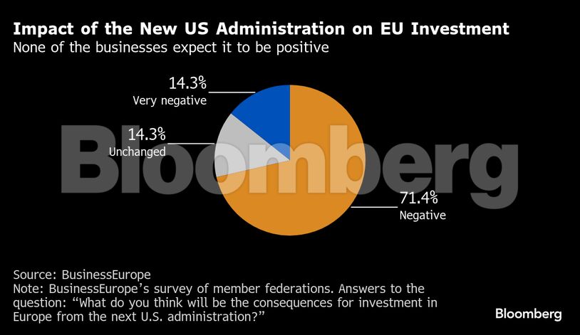 Οι ευρωπαϊκές επιχειρήσεις εκφράζουν ανησυχία για την πολιτική απορρύθμισης της κυβέρνησης του Ντόναλντ Τραμπ, καθώς εκτιμούν ότι ενδέχεται να απομακρύνει επενδύσεις από την Ευρωπαϊκή Ένωση, σύμφωνα με έκθεση της BusinessEurope. Η έρευνα διαπίστωσε ότι το 85,7% των επιχειρηματικών ομοσπονδιών που συμμετείχαν θεωρεί ότι η στρατηγική των ΗΠΑ έχει αρνητικό αντίκτυπο στις επενδύσεις στην Ευρώπη, ενώ καμία δεν εκτιμά ότι θα έχει θετική επίδραση.