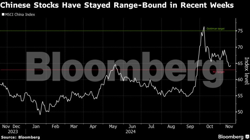 Ο δείκτης MSCI China Index έχει υποχωρήσει περίπου 15% από τα πρόσφατα υψηλά του, καθώς ο ενθουσιασμός για την προοπτική μεγαλύτερης κυβερνητικής στήριξης εξανεμίζεται και η νίκη του Ντόναλντ Τραμπ στις αμερικανικές εκλογές εγείρει ανησυχίες για υψηλότερους δασμούς στην Κίνα.