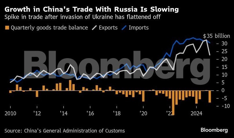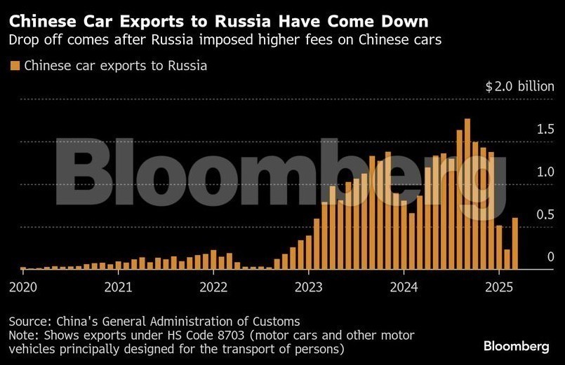 Παρότι η ραγδαία αύξηση στο διμερές εμπόριο μετά την εισβολή στην Ουκρανία άγγιξε τα $245 δισ. το 2024, η δυναμική αυτή έχει εξασθενήσει, με σημαντική πτώση στις εξαγωγές κινεζικών αυτοκινήτων προς τη Ρωσία.