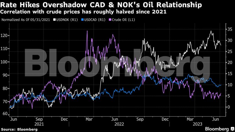 Οι διαφορές των επιτοκίων μπορεί, μεν, να αποτελούν τον κύριο λόγο της στρέβλωσης αυτής αλλά, σύμφωνα με το στέλεχος της BMO Capital Markets, Στίβεν Γκάλο, «το στάτους του δολαρίου Καναδά και της νορβηγικής κορώνας ως commodity currency έχει περιοριστεί, δεδομένης της αυξημένης παραγωγής πετρελαίου στις ΗΠΑ, της προσπάθειας ενεργειακής μετάβασης και της αγοράς μετοχών του νορβηγικού κρατικού ταμείου πλούτου με κορώνες».