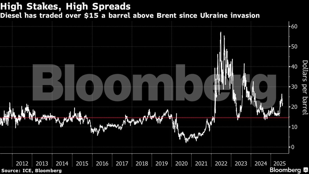 Η απόσταση ανάμεσα στις τιμές του ντίζελ και του Brent έχει διευρυνθεί. Πριν από τον πόλεμο στην Ουκρανία, το spread ήταν σπάνια πάνω από 15 δολάρια. Πλέον, ξεπερνά τα 20 στην Ευρώπη και τα 30 στις ΗΠΑ. Η Goldman Sachs προβλέπει ότι θα παραμείνει υψηλό έως και το 2026, λόγω της επίμονης έλλειψης διυλιστικής δυναμικότητας, ενώ η TotalEnergies προβλέπει ότι οι υψηλές τιμές του ντίζελ ήρθαν για να μείνουν.