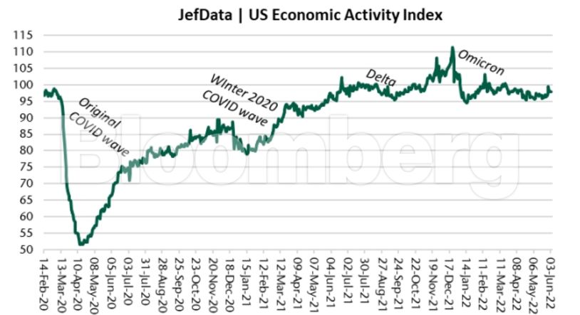 Ο δείκτης της Jefferies LLC ο οποίος παρακολουθεί δεδομένα όπως τις κρατήσεις σε εστιατόρια, την καταναλωτική κίνηση στο διαδίκτυο και την κίνηση στα μέσα μεταφοράς, κατέγραψε αύξηση τον Μάιο.