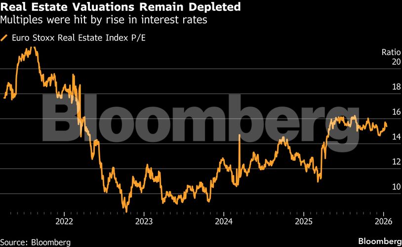 Ο δείκτης Euro Stoxx Real Estate ενισχυόταν κατά 1,5% το μεσημέρι της Πέμπτης στο Λονδίνο. Παρ’ όλα αυτά, σε ετήσια βάση ο δείκτης καταγράφει κέρδη μόλις 5,8%, υστερώντας σημαντικά έναντι της ανόδου 19% του Stoxx Europe 600, ενώ παραμένει περίπου 33% χαμηλότερα σε σχέση με τα επίπεδα πριν από την έναρξη του κύκλου αυξήσεων των επιτοκίων από τις κεντρικές τράπεζες πριν από τέσσερα χρόνια.