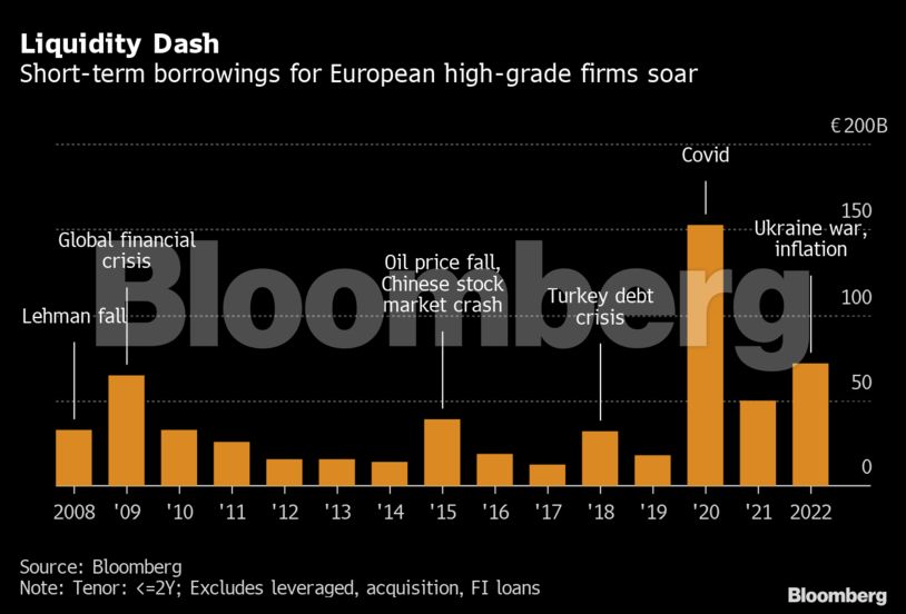 Οι μεγάλες ευρωπαϊκές επιχειρήσεις προχωρούν στην έκδοση ομολόγων με ωρίμανση μικρότερη από τα δύο έτη, πολύ χαμηλότερη από τη συνήθη πρακτική του 5ετούς δανεισμού. Έχουν ήδη προχωρήσει σε άντληση κεφαλαίων ύψους 76 δισ. ευρώ φέτος, τη δεύτερη μεγαλύτερη στα χρονικά μετά από αυτή των 153 δισ. ευρώ κατά τη διάρκεια της πανδημίας.