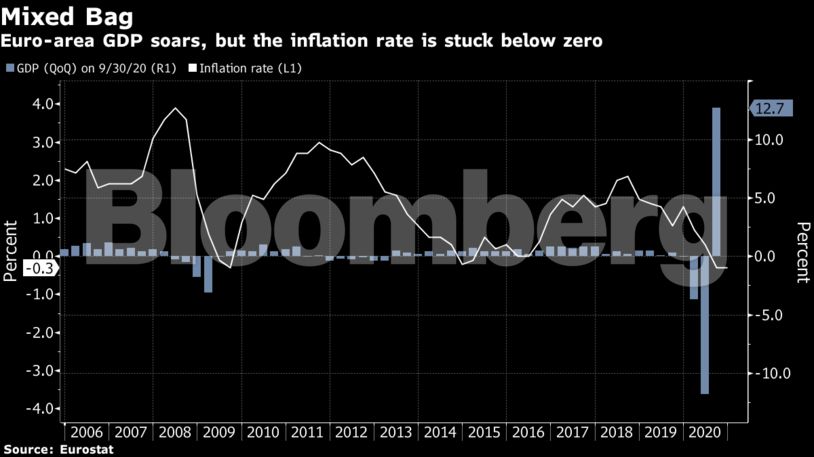 Η ανάπτυξη στην ευρωζώνη ανήλθε στο 12,7% έναντι πρόβλεψης των οικονομολόγων για αύξηση του ΑΕΠ κατά 9,6%.
