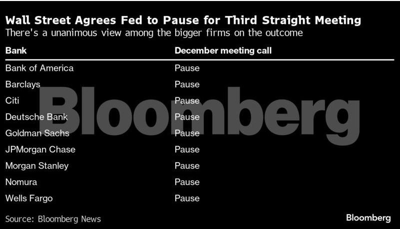 “Δύο συνεχόμενες συγκρατήσεις θα μπορούσαν να θεωρηθούν ως προσωρινή παύση, αλλά πιστεύουμε ότι τρεις συνιστούν το τέλος του κύκλου. Οι αξιωματούχοι θα συζητήσουν τις συνθήκες υπό τις οποίες θα μπορούσαν να αρχίσουν να μειώνουν τα επιτόκια το επόμενο έτος”.
