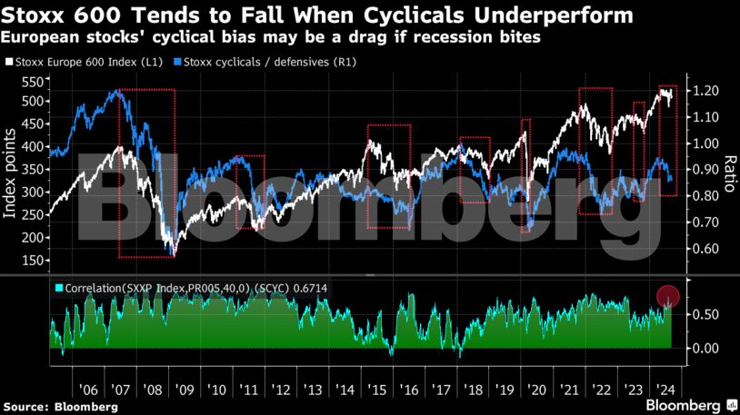 Η ευρωπαϊκή αγορά είναι εξ ορισμού πιο κυκλική από την αντίστοιχη αμερικανική, με αυτούς τους ευαίσθητους στην οικονομία τομείς να αντιπροσωπεύουν περίπου τα δύο τρίτα του δείκτη αναφοράς Stoxx 600. Κατά συνέπεια, η συσχέτιση του δείκτη με τον όμιλο είναι συνήθως πολύ υψηλή. Όμως, οποιαδήποτε στήριξη από αυτές τις επιχειρήσεις κινδυνεύει τώρα με διπλό πλήγμα από την επιβράδυνση της ανάπτυξης και τους εμπορικούς κινδύνους με την Κίνα.