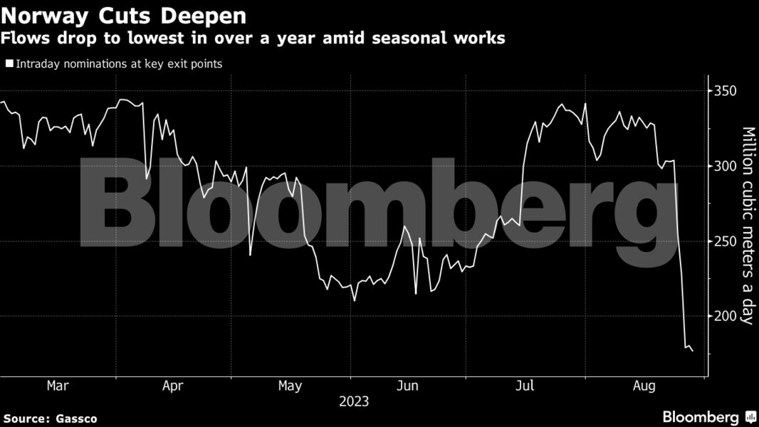 Ενώ δεν υπήρξαν σημαντικές εξελίξεις σχετικά με τις διαπραγματεύσεις αυτές κατά τη διάρκεια του Σαββατοκύριακου, οι ροές προς την Γηραιά ήπειρο από τον κορυφαίο προμηθευτή της, τη Νορβηγία υποχώρησαν στο χαμηλότερο επίπεδο εδώ και πάνω από έναν χρόνο, αφού οι προμήθειες από το γιγαντιαίο πεδίο Troll διακόπηκαν το Σάββατο στο πλαίσιο προγραμματισμένης συντήρησης.