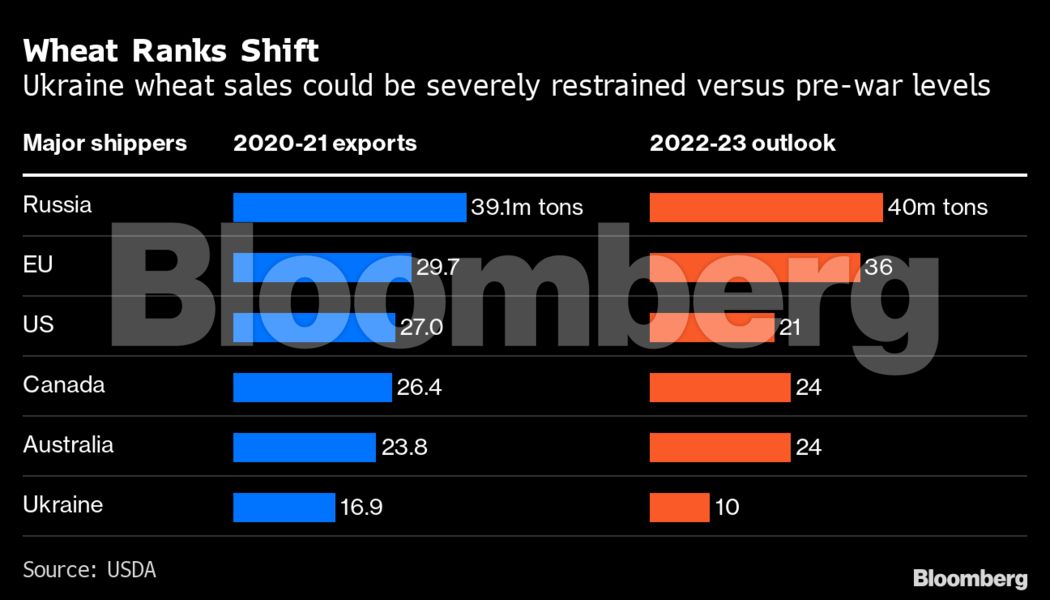 Αυτός ο μήνας θα δοκιμάσει πόσο σιτάρι μπορεί να φτάσει στην αγορά με τις προμήθειες της Ουκρανίας να εξακολουθούν να είναι ιδιαίτερα περιορισμένες. Τα συμβόλαια μελλοντικής εκπλήρωσης του σιταριού και του καλαμποκιού έχουν επιστρέψει στα επίπεδα που παρατηρήθηκαν λίγο πριν από την εισβολή της Ρωσίας στη γειτονική της χώρα, συμβάλλοντας ενδεχομένως στην εξομάλυνση των τιμών. H μηνιαία έκθεση του ΟΗΕ για το παγκόσμιο κόστος των τροφίμων αναμένεται να δοθεί στη δημοσιότητα την Πέμπτη.