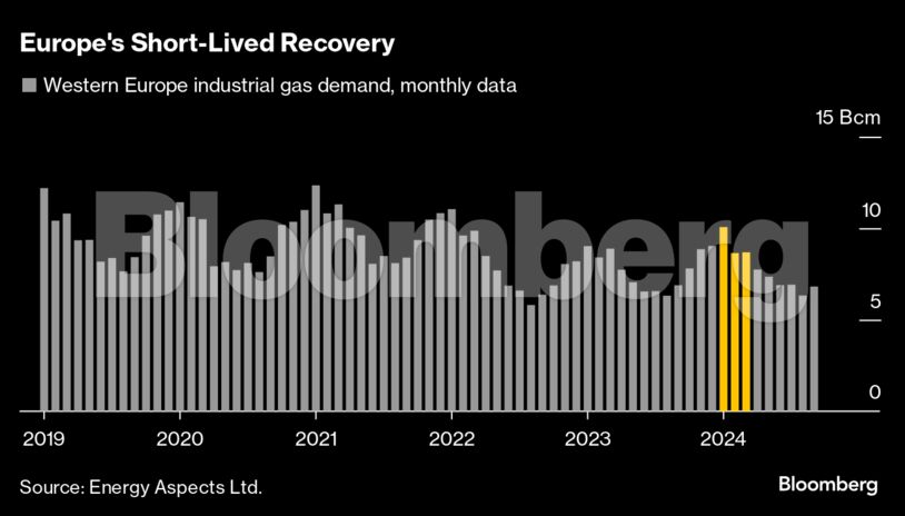 Ενώ η χρήση βιομηχανικού φυσικού αερίου είναι αυξημένη σε ετήσια βάση, η S&P μείωσε την εκτίμησή της για την αύξηση το 2024 σε 5,8% και βλέπει μείωση 0,7% το 2025. Η κατανάλωση παραμένει πολύ χαμηλότερη από ό,τι ήταν πριν από την ενεργειακή κρίση. Μάλιστα, ο οίκος δεδομένων αναμένει ότι 9,5 δισεκατομμύρια κυβικά μέτρα ετήσιας ζήτησης θα χαθούν μόνιμα λόγω της διακοπής της παραγωγής και των μέτρων ενεργειακής απόδοσης, σύμφωνα με το Bloomberg.