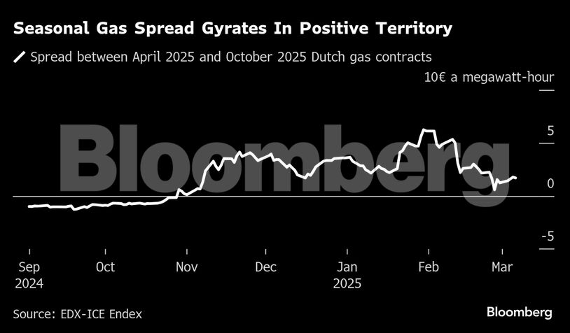Μια αρνητική διαφορά μεταξύ των δύο εποχικών συμβολαίων είναι απαραίτητη για να δοθούν κίνητρα για ενέσεις σε χώρους αποθήκευσης κατά τους θερμότερους μήνες. Από το περασμένο φθινόπωρο, η διαφορά μεταστράφηκε σε θετική, φθάνοντας έως και τα 6,75 ευρώ στις 31 Ιανουαρίου, αποθαρρύνοντας τις προσπάθειες αποθήκευσης αποθεμάτων που συνήθως ξεκινούν τον Απρίλιο.