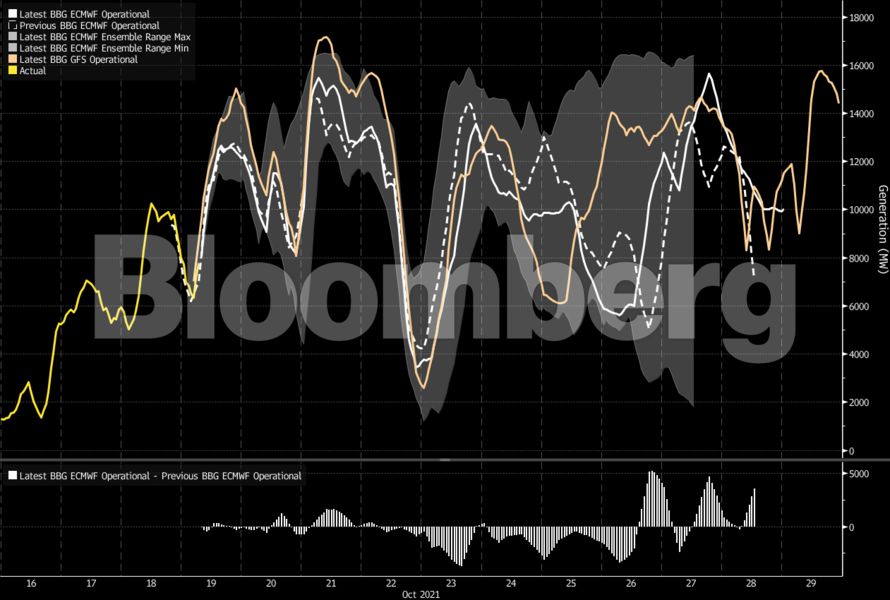 Οι υψηλές -για την εποχή- θερμοκρασίες μειώνουν τις επιπτώσεις από τις πιο χαμηλές ρωσικές προμήθειες. Οι άνεμοι ενισχύονται σε Ηνωμένο Βασίλειο και Γερμανία και οι ανεμογεννήτριες είναι έτοιμες να παράγουν περισσότερη ηλεκτρική ενέργεια από ποτέ την Πέμπτη.