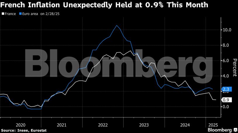 Οι τιμές καταναλωτή στη δεύτερη μεγαλύτερη οικονομία της Ευρωζώνης αυξήθηκαν κατά 0,9% σε ετήσια βάση, σύμφωνα με τη στατιστική υπηρεσία Insee, επαναλαμβάνοντας τον ρυθμό του Φεβρουαρίου. Οι αναλυτές που συμμετείχαν σε δημοσκόπηση του Bloomberg ανέμεναν μικρή άνοδο στο 1,1%.
