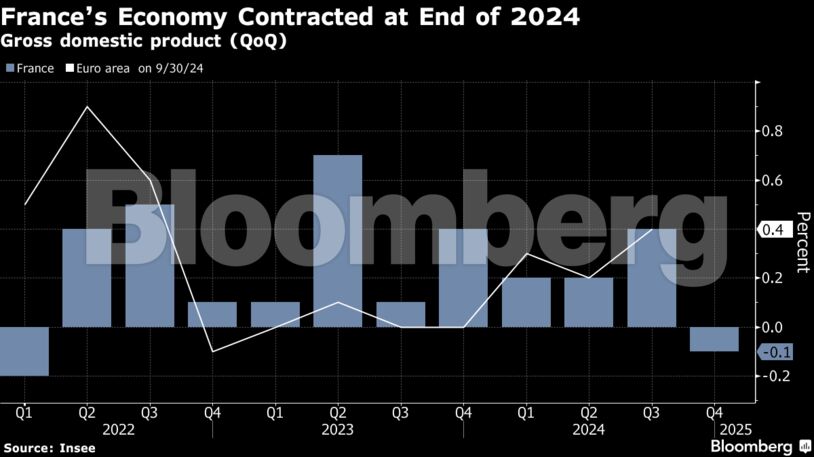 Η οικονομία της Γαλλίας συρρικνώθηκε στο τέλος του περασμένου έτους, καθώς εξασθένησε η θετική επίδραση των Ολυμπιακών Αγώνων του Παρισιού και η κυβερνητική κατάρρευση έπληξε την εμπιστοσύνη των επιχειρήσεων και των καταναλωτών.
