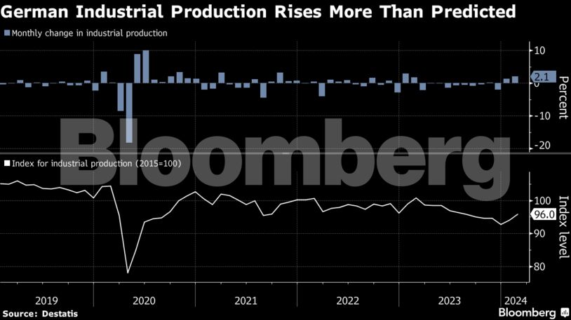 Η γερμανική βιομηχανική παραγωγή αυξήθηκε περισσότερο από ό,τι προβλεπόταν. Παρά την αύξηση αυτού του μήνα, η συνολική παραγωγή εξακολουθεί να είναι πολύ χαμηλότερη από τα προ της πανδημίας επίπεδα, γεγονός που καταδεικνύει τις προκλήσεις που ο σημαντικός μεταποιητικός τομέας της Γερμανίας έπρεπε να αντιμετωπίσει από τότε – συμπεριλαμβανομένης της αύξησης του ενεργειακού κόστους μετά τον πόλεμο στην Ουκρανία. Πιο πρόσφατα, επιβαρύνθηκε επίσης από την αδύναμη εξωτερική ζήτηση, το υψηλό κόστος δανεισμού και την αβεβαιότητα σχετικά με την κατεύθυνση της οικονομικής πολιτικής.
