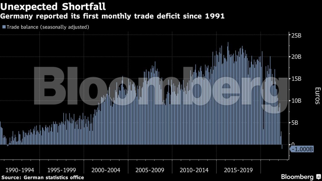 Το έλλειμμα τον Μάιο για τη μεγαλύτερη οικονομία της Ευρώπης ήταν 1 δισεκατομμύριο ευρώ (1 δισεκατομμύριο δολάρια), πρόκειται για έλλειμμα που τελευταία φορά κατέγραψε το 1991. Οι διασυνοριακές εξαγωγές μειώθηκαν απροσδόκητα κατά 0,5%, ενώ οι εισαγωγές αυξήθηκαν 2,7%, πολύ περισσότερο από ό,τι ανέμεναν οι οικονομολόγοι.