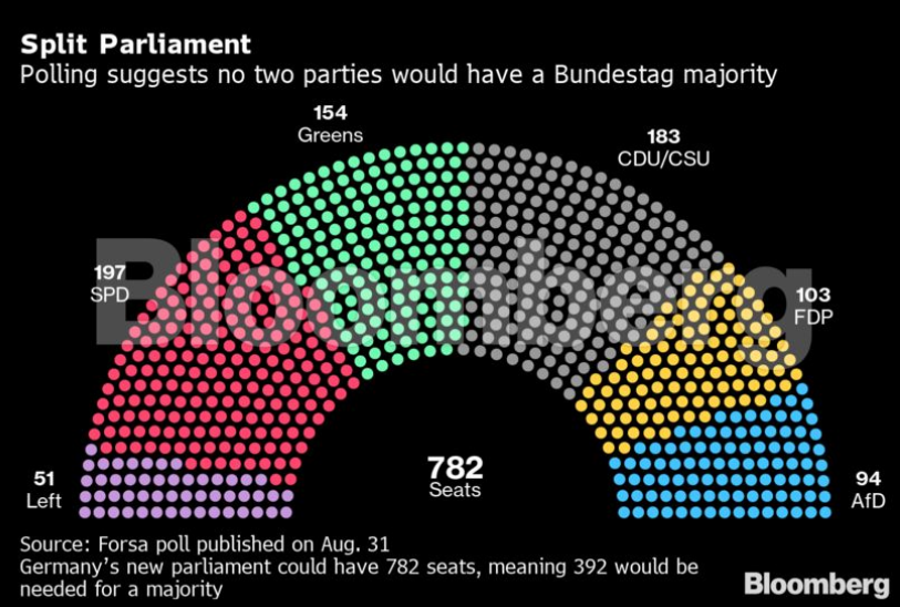 Εάν οι Σοσιαλδημοκράτες μπορέσουν να διατηρήσουν το προβάδισμά τους στις δημοσκοπήσεις, ο Σολτς πιθανότατα θα κληθεί από τον Πρόεδρο Φρανκ Στέινμειερ να σχηματίσει κυβέρνηση. Ένας συνασπισμός υπό την ηγεσία του SPD με τους Πράσινους και το FDP είναι το πιο πιθανό σενάριο, αν και οι φιλελεύθεροι έχουν αποστασιοποιηθεί από μια τέτοια συμμαχία, χωρίς να το αποκλείσουν εντελώς.