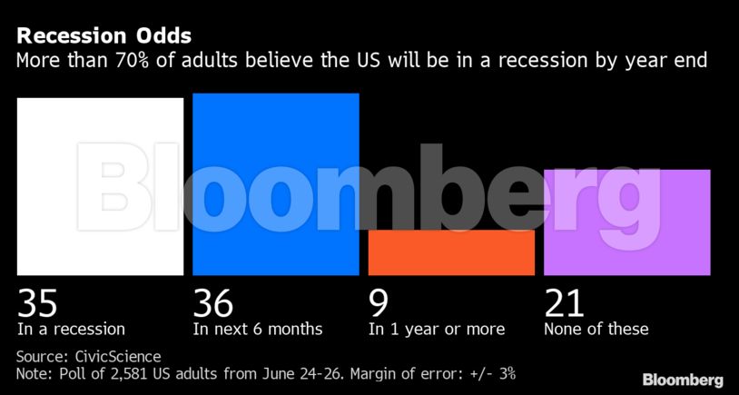 Οι αναλυτές της Goldman Sachs εκτιμούν την πιθανότητα δημιουργίας ύφεσης στις ΗΠΑ το 2023 στο 30%. Το Bloomberg εκτιμά πως η πιθανότητα αυτή είναι αυξημένη στο 38%. Για πολλούς απλούς καταναλωτές, όμως, η ύφεση είναι ήδη εδώ. Πάνω από το 1/3 των Αμερικανών πολιτών τονίζουν πως η οικονομία ήδη περνάει κρίση, σύμφωνα με πρόσφατη δημοσκόπηση της CivicScience.