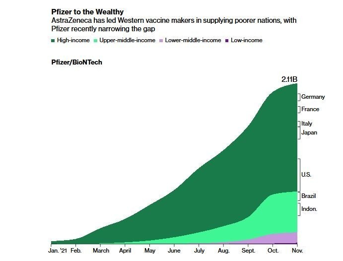 Τους τελευταίους μήνες έχει αρχίσει να αυξάνει τη διανομή εμβολίων και στις αναπτυσσόμενες οικονομίες. Έως τις 7 Νοεμβρίου είχε παραδώσει περισσότερες από 658 εκατ. δόσεις σε χώρες με χαμηλά και μεσαία εισοδήματα. Έως το τέλος του έτους αναμένεται να φτάσει στο 1,1 δισ. δόσεις. Είναι πρόθυμη να επιταχύνει κι άλλο τις παραδόσεις προς φτωχές χώρες, αλλά υπάρχει κάτι που δεν διαπραγματεύεται: η μυστική φόρμουλα του εμβολίου.