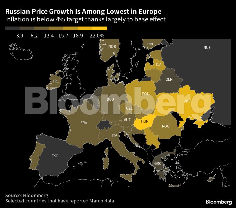 Σύμφωνα με επικαιροποιημένα δεδομένα, ο ρωσικός πληθωρισμός κυμάνθηκε στο 3,5% τον Μάρτιο σε ετήσια βάση, μειωμένος σημαντικά από το 11% του Φεβρουαρίου, ενώ κυμαίνεται υπό τον πληθωριστικό στόχο του 4% της ρωσικής κυβέρνησης. Επιπροσθέτως, σύμφωνα με το Bloomberg, ο Πούτιν τόνισε πως ο πληθωρισμός στη χώρα ενδέχεται να μειωθεί υπό του 3% τον Απρίλιο.