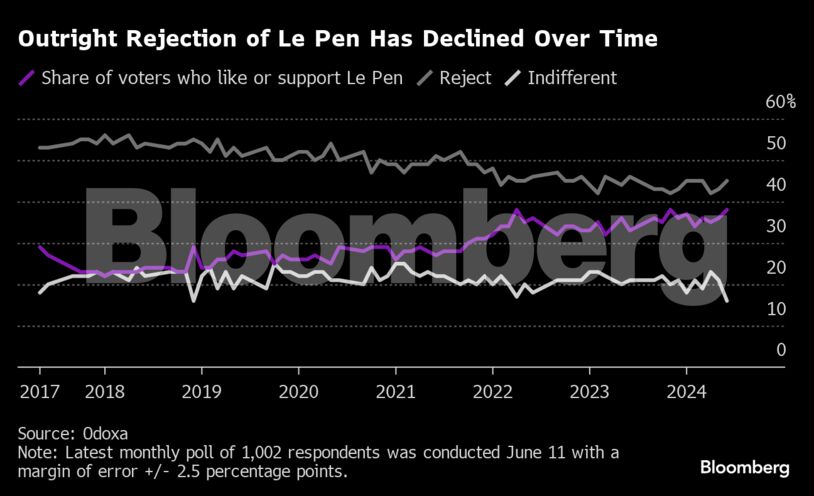 Ενώ τα κυρίαρχα κόμματα ήταν σε θέση να βασίζονται στο ότι οι πολίτες ψήφιζαν για να εμποδίσουν την ακροδεξιά στο παρελθόν, αυτή η δυναμική έχει περιοριστεί, με το ποσοστό των Γάλλων που απορρίπτουν ευθέως τη Λεπέν να μειώνεται.