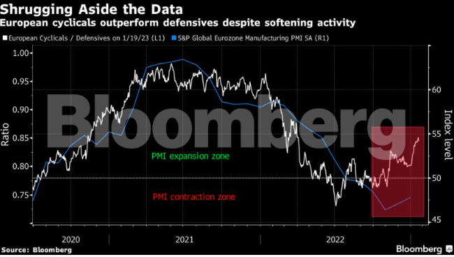 Οι ευρωπαϊκές μετοχές παρουσίασαν υψηλές επιδόσεις τον Ιανουάριο, με τον Stoxx 600 να ενισχύεται περίπου κατά 7% με απόδοση σχεδόν στο 19% από το χαμηλό της 29ης Σεπτεμβρίου, ξεπερνώντας τις ΗΠΑ κατά 11 ποσοστιαίες μονάδες σε τοπικά νομίσματα. Οι κυκλικές μετοχές, συμπεριλαμβανομένων κλάδων όπως της λιανικής, των ταξιδιών, των τραπεζών και της τεχνολογίας οδήγησαν στο ράλι, ωθούμενες από το ταχύτερο του αναμενόμενου άνοιγμα στην Κίνα, την αποφυγή μιας βαθύτερης ενεργειακής κρίσης και τις ενδείξεις ότι ο πληθωρισμός επιβραδύνεται. Επιπλέον, η οικονομία διατηρείται σε καλύτερη κατάσταση από τις προβλέψεις, με τον αριθμό των οικονομολόγων που προβλέπουν τώρα ύφεση να μειώνεται, γεγονός που υποδηλώνει ότι τα κέρδη ενδέχεται να υποχωρήσουν λιγότερο από ό,τι αναμενόταν αρχικά.