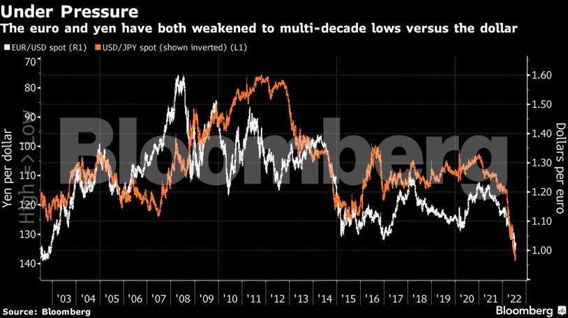 Η ισοτιμία του δολαρίου, ωθούμενη από την επιθετική σύσφιξη της νομισματικής πολιτικής εκ μέρους της Fed και των επενδύσεων λόγω του χαρακτηρισμού του ως «ασφαλούς καταφυγίου» βρίσκεται σε υψηλά δεκαετιών. Από την άλλη, οι ισοτιμίες του ευρώ και του γεν προσπαθούν να αντέξουν στις πιέσεις αυτές, ενώ χώρες όπως η Χιλή και η Ινδία έχουν ήδη παρέμβει προς διάσωση των εθνικών τους νομισμάτων.