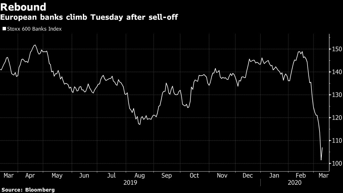 O τραπεζικός δείκτης του πανευρωπαϊκού Stoxx 600 ανέκαμψε τις πρώτες πρωινές ώρες κατά 5,3% την Τρίτη μετά το ευρύ sell off της Δευτέρας.