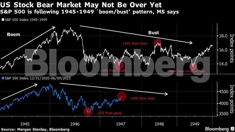 Η πορεία την οποία καταγράφει ο S&P 500 έχει διχάσει τις απόψεις των αναλυτών. Σύμφωνα με τους ειδικούς της Goldman Sachs, η άνοδος αναμένεται να συνεχιστεί, τη στιγμή που άλλοι τομείς της αγοράς ακολουθούν το ράλι των μετοχών τεχνολογίας. Ο Μάικλ Γουίλσον της Morgan Stanley, από την πλευρά του, μιλά για τη bear market της δεκαετίας του ‘40 όταν ο S&P 500 κατέγραψε ράλι 24% πριν επιστρέψει σε νέο χαμηλό.