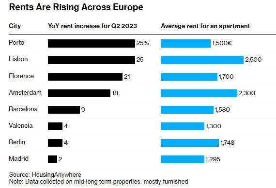 Σε όλες τις μεγάλες ευρωπαϊκές πόλεις, οι ενοικιαστές έρχονται αντιμέτωποι με μια μεγάλη έλλειψη σπιτιών, η οποία ωθεί τις τιμές σε επίπεδα ρεκόρ. Την ίδια στιγμή, η αύξηση των επιτοκίων στα στεγαστικά δάνεια αποτρέπει τις νέες αγοροπωλησίες, ενώ ο επίμονος πληθωρισμός, ο οποίος γιγαντώνει το κόστος κατασκευής, περιορίζει το διαθέσιμο «απόθεμα» κατοικιών.