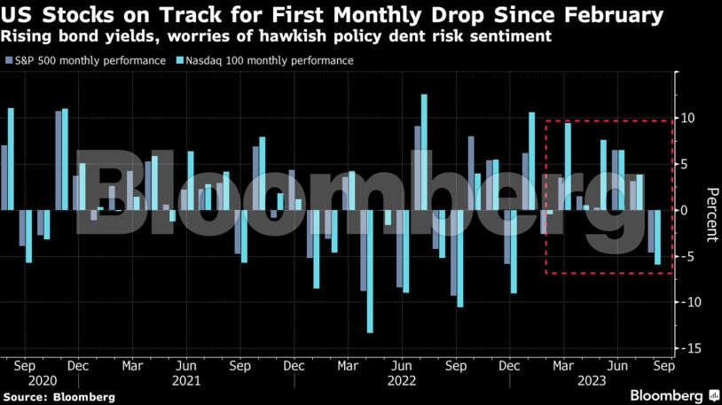 Οι αμερικανικές αγορές βρίσκονται ένα βήμα πριν από την πρώτη μηνιαία πτώση τους από τον Φεβρουάριο, τη στιγμή που οι επενδυτές ανησυχούν πως οι κεντρικές τράπεζες θα επιμείνουν στη συσφιγμένη νομισματική πολιτική τους για μεγαλύτερο από το αναμενόμενο χρονικό διάστημα.