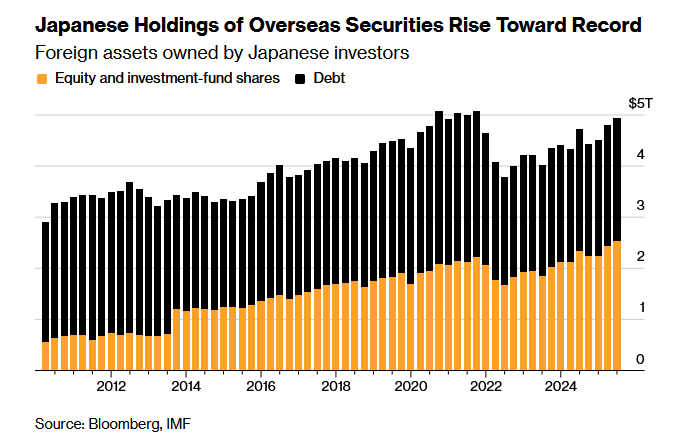 To sell-off της περασμένης εβδομάδας, συνοδευόμενο από δραματικές διακυμάνσεις του γιεν, κατέστησε σαφές ότι εκείνες οι μέρες έχουν τελειώσει. Ο πληθωρισμός, που παρέμενε αδρανής για πολύ καιρό στην Ιαπωνία, έχει εδραιωθεί και, επιπλέον, η πρωθυπουργός Σανάε Τακαΐτσι προωθεί σχέδια δημοσιονομικής τόνωσης που θα αυξήσουν το ήδη δυσάρεστα μεγάλο δημόσιο χρέος. Ως αποτέλεσμα, οι επενδυτές έχουν ανεβάσει με φρενήρη ρυθμό τις αποδόσεις των ομολόγων σε επίπεδα που κάποτε ήταν αδιανόητα — πάνω από 4% για τα μακροπρόθεσμα ιαπωνικά κρατικά ομόλογα. Αυτό ασκεί ανοδική πίεση στα επιτόκια από τις ΗΠΑ έως τη Βρετανία και τη Γερμανία.