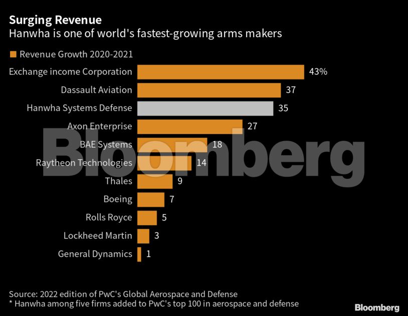 Η αξία των μετοχών της Hanwha Aerospace έχει αυξηθεί πάνω από 30% φέτος, μετά από παρόμοια αύξηση της τάξης του 52% το 2022, όταν το Hanwha Group συγχώνευσε τις εταιρείες κατασκευής οπλικών συστημάτων της με τη Hanwha Aerospace. Η «οικογενειακή» Hanwha Group ελέγχεται από τον απόφοιτο του πανεπιστημίου του Χάρβαρντ και «διάδοχο» της επιχειρηματικής αυτοκρατορίας της οικογένειας, Ντονγκ Κουάνγκ Κιμ, ο οποίος είναι επικεφαλής και της Hanwha Aerospace.
