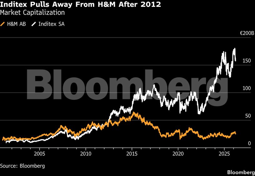 Πριν από μια δεκαετία, η H&M και η Inditex θεωρούνταν ισότιμες. Οι δύο εταιρείες παρήγαγαν γενικά συγκρίσιμα κέρδη στις αρχές της δεκαετίας του 2010. Ωστόσο, σε ό,τι αφορά την αγοραία αξία, η Inditex άρχισε να ξεχωρίζει μετά το 2012 περίπου.