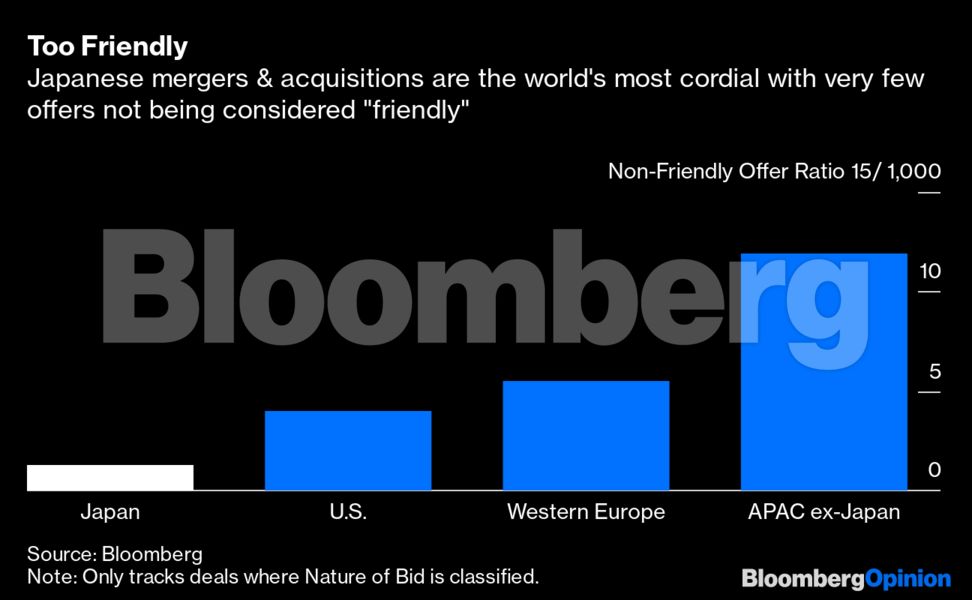 «Δεν πουλάω», λέει ο πρόεδρος μιας από τις μεγαλύτερες εταιρείες τεχνολογίας στην Ιαπωνία. Και κάπως έτσι, άρχισε ο πόλεμος των επιθετικών προσφορών, καθώς ο τεχνολογικός κλάδος στην Ιαπωνία έχει περιθώρια περαιτέρω συγχωνεύσεων κι εξαγορών. Ωστόσο, οι επιθετικές εξαγορές είναι κάτι τόσο σπάνιο, ώστε οι περισσότερες συμφωνίες φαίνεται να έχουν γίνει στη διάρκεια ενός γεύματος μεταξύ φίλων.