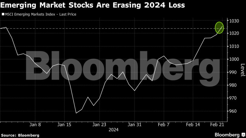 Ο δείκτης MSCI Emerging Markets Index σημείωσε άνοδο έως και 0,7% την Τετάρτη, ενισχύοντας την πιθανότητα να κλείσει πάνω από το επίπεδο των 1.023,74 της τελευταίας ημέρας διαπραγμάτευσης του 2023.