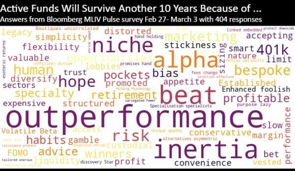 Το 25% των ερωτηθέντων αναμένουν πως οι διαχειριστές ενεργητικών funds θα εκλείψουν μέσα στην επόμενη δεκαετία. Ορισμένοι, όμως, τόνισαν πως η ευελιξία των διαχειριστών των ενεργητικών funds θα μπορούσε να προσφέρει αυξημένες αποδόσεις στους πελάτες τους λόγω της ελαστικότητας και της ικανότητας άμεσης προσαρμογής των επενδυτικών επιλογών στα νέα δεδομένα.