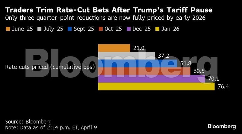 Σε αναθεώρηση των προσδοκιών τους για τις μειώσεις επιτοκίων από την Federal Reserve προχώρησαν οι επενδυτές, μετά την αιφνιδιαστική απόφαση του Ντόναλντ Τραμπ να «παγώσει» για 90 ημέρες την εφαρμογή της αύξησης των δασμών σε δεκάδες εμπορικούς εταίρους, εξαιρουμένης της Κίνας, για την οποία αποφάσισε περαιτέρω αύξηση τους στο 125%.