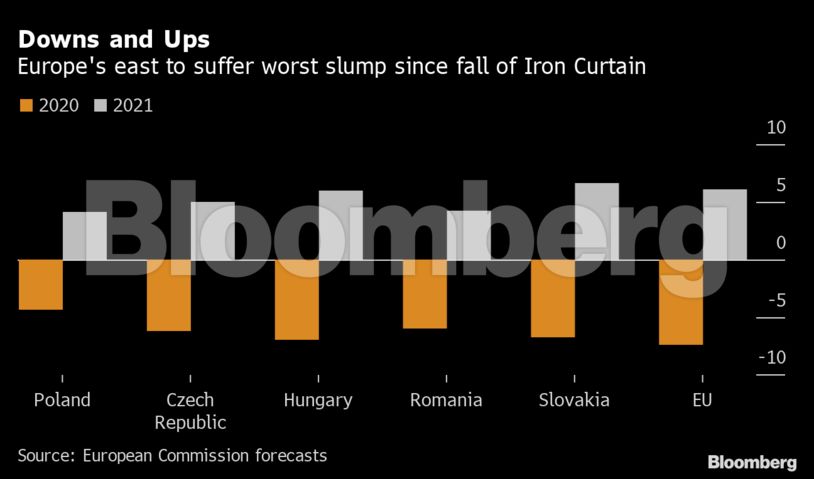 Η ζημιά που υπέστη το πρώτο τρίμηνο από τον κορωνοϊό η ταχύτερα αναπτυσσόμενη περιοχή της ΕΕ είναι άνευ προηγουμένου, ενώ έπονται και ακόμα χειρότερα καθώς οι χώρες του πρώην ανατολικού μπλοκ αναμένεται να έχουν τη χειρότερη ύφεση από την εποχή που έπεσε το Σιδηρούν Παραπέτασμα.